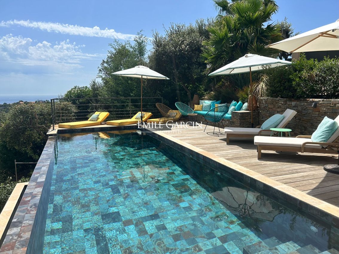 Située dans un domaine privé, sur les hauteurs de La Croix-Valmer, à proximité de Gigaro, cette élégante villa récente allie charme provençal et confort moderne, dans un cadre paisible. D'une superficie généreuse, elle dispose de 4 chambres et 4 salles de bains, offrant de beaux espaces de vie lumineux. A l'extérieur, vous profiterez d'une piscine miroir à débordement chauffée, d'un terrain de pétanque, d'une table de ping-pong ainsi que d'un garage et d'un parking. Un cadre exceptionnel pour des séjours en toute sérénité.