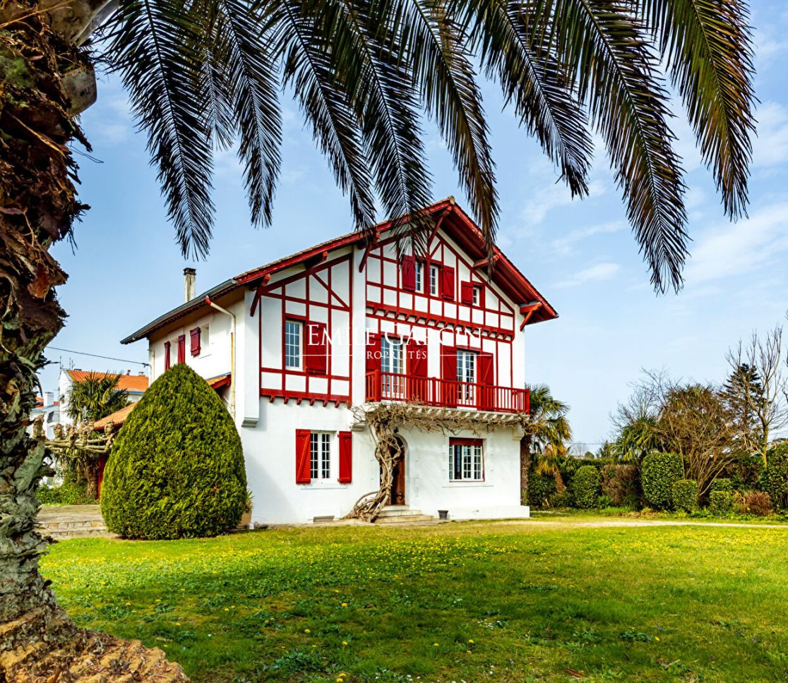Située dans un environnement paisible et verdoyant, au coeur d'un quartier prisé de Bayonne, « Ohantzia », le nid en basque, élégante maison basque édifiée en 1926, incarne le charme intemporel des demeures de caractère. Propriété familiale depuis 1967, elle a traversé les générations en conservant son authenticité et son âme. Développant environ 205 m² environ( loi carrez), la maison s'inscrit sur un magnifique terrain arboré de 2 089 m², véritable écrin de verdure sublimé par un majestueux magnolia en son centre. Dès l'entrée, le ton est donné : le salon, spacieux et lumineux, accueille une superbe cheminée basque qui réchauffe l'atmosphère et crée un point focal chaleureux.