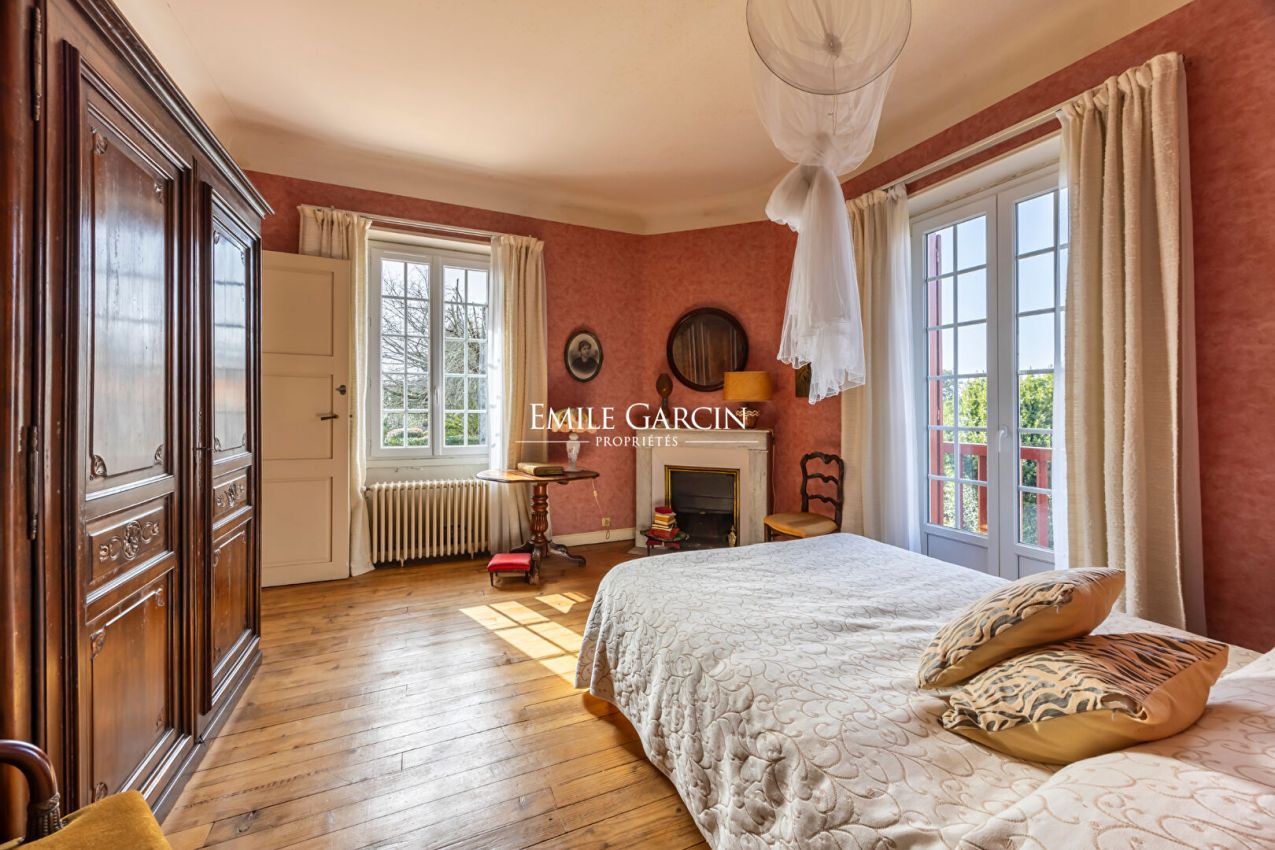 La demeure propose aujourd'hui six chambres, dont une magnifique suite parentale avec cheminée et salle d'eau, ainsi que deux autres suites parentales avec baignoire. Ces espaces confortables et raffinés permettent d'accueillir aisément une grande famille ou de recevoir des invités dans un cadre privilégié. Au deuxième étage, trois autres chambres et une partie de combles à aménager. Les espaces de réception s'ouvrent sur une agréable terrasse tournée vers le parc, invitant à profiter des beaux jours dans un cadre intime et préservé. Un grand garage complète la propriété, avec deux pièces supplémentaires offrant un potentiel idéal pour créer des espaces complémentaires à la maison, tels qu'un atelier, un bureau ou une salle de loisirs.