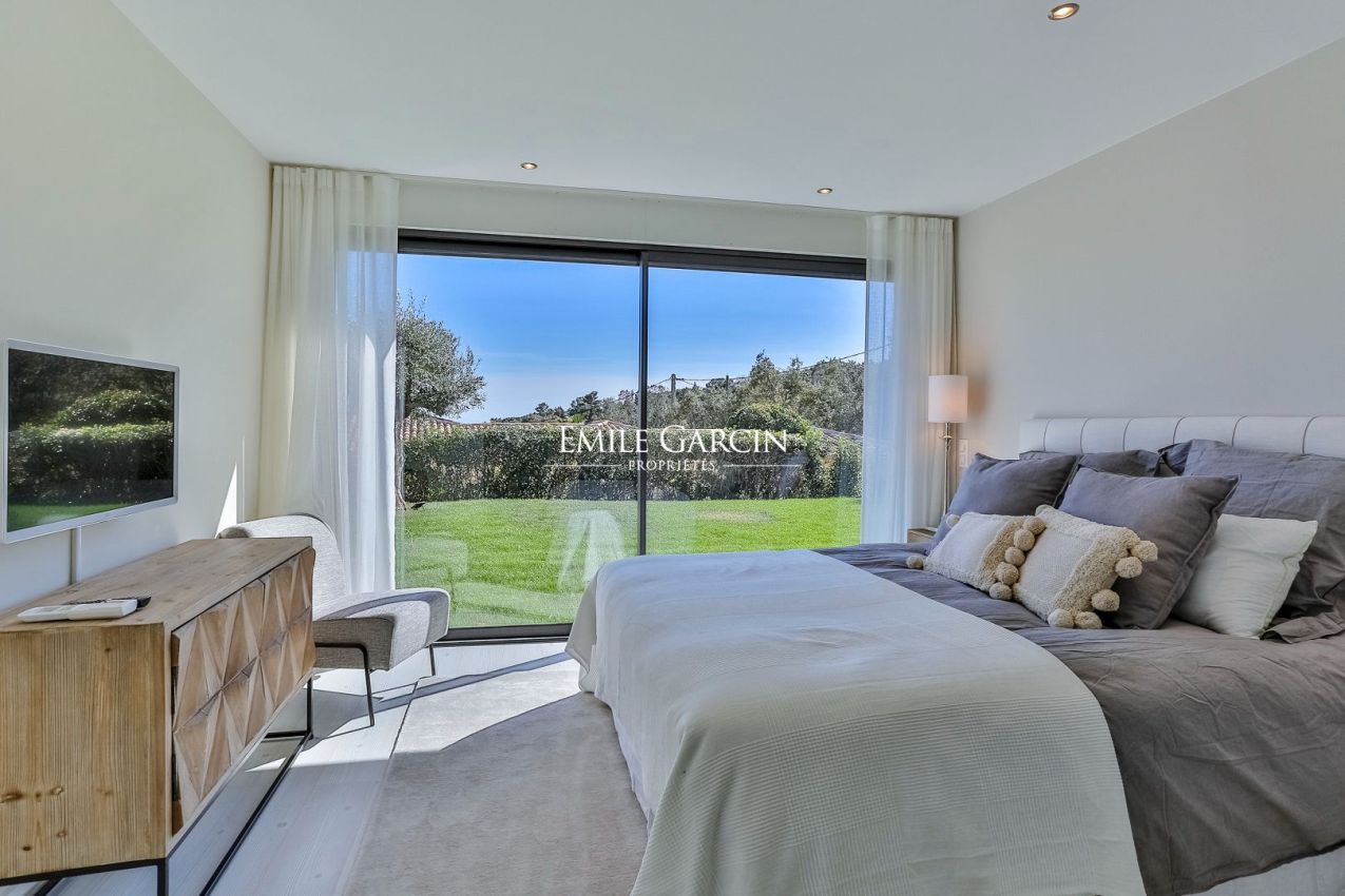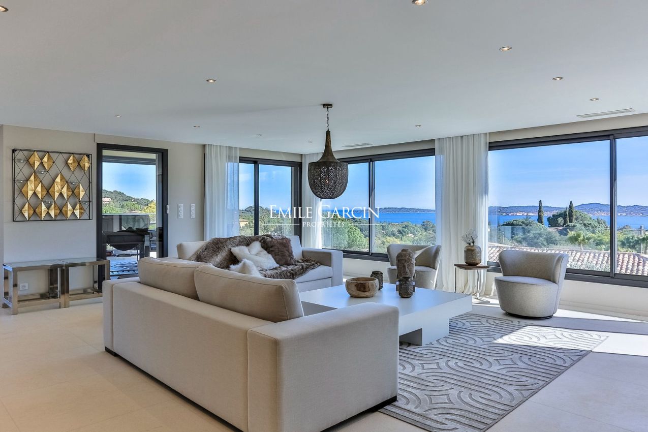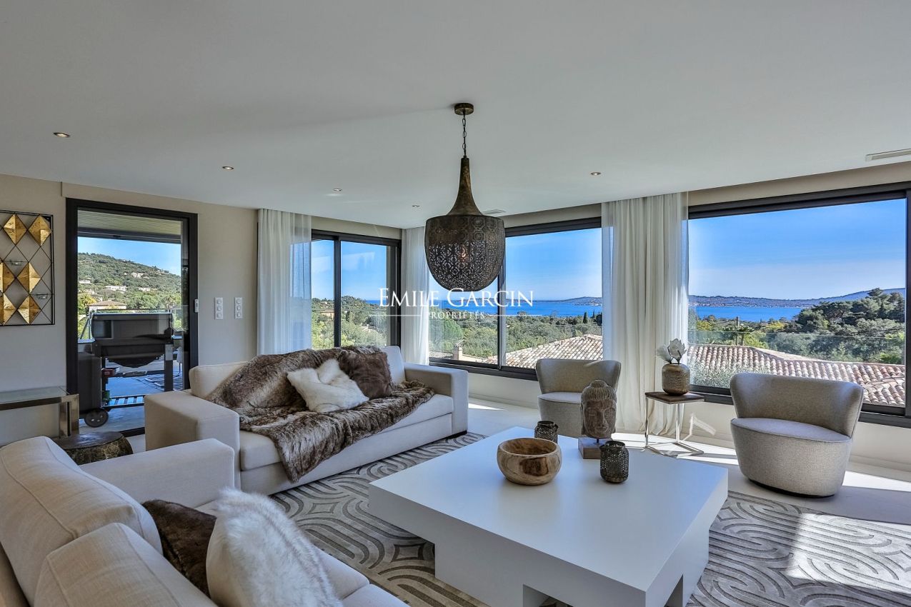 Située sur les hauteurs du prestigieux Golf de Beauvallon à Grimaud, cette villa contemporaine de 300 m² offre un cadre exceptionnel avec une vue imprenable sur le Golfe de Saint-Tropez. Édifiée sur un terrain de 2 000 m², cette propriété récente séduit par son architecture élégante et sa décoration scandinave. Ses vastes espaces de vie, baignés de lumière, s'ouvrent sur l'extérieur, où une piscine chauffée de 10x4m et un hammam invitent à la détente. A proximité immédiate du Golf Club, elle dispose de 4 chambres avec salles de bains, garantissant confort et intimité.
