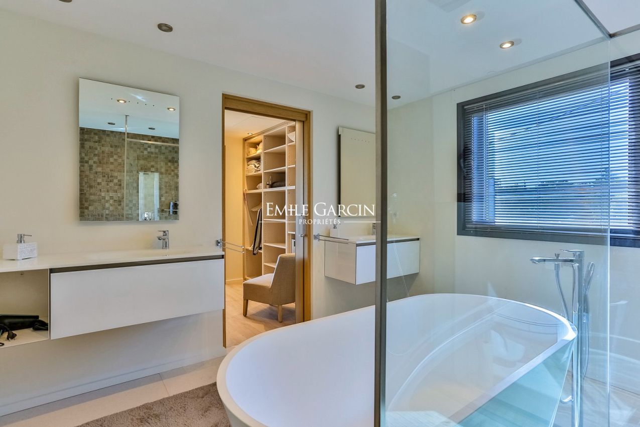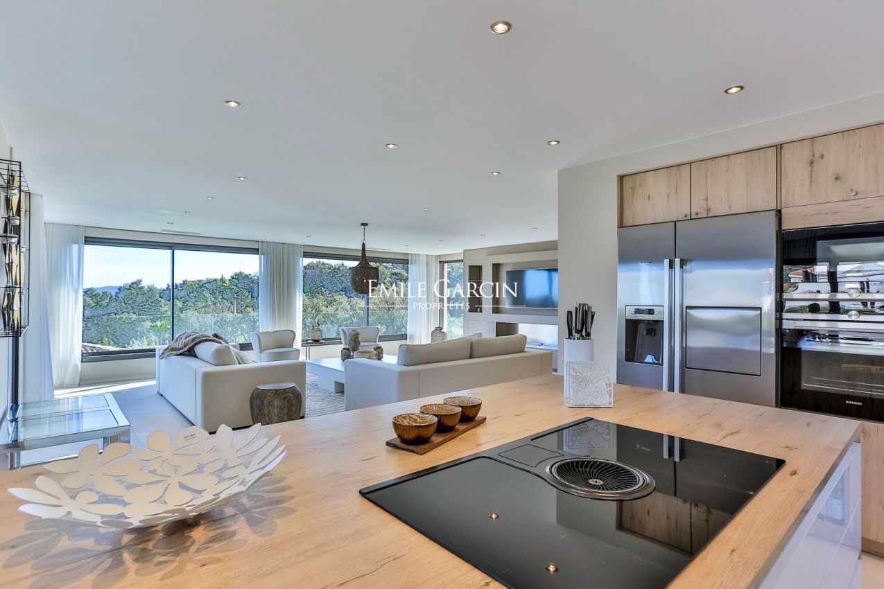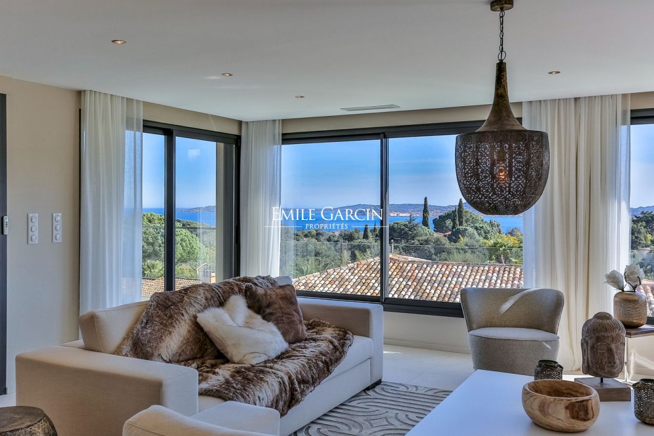 Située sur les hauteurs du prestigieux Golf de Beauvallon à Grimaud, cette villa contemporaine de 300 m² offre un cadre exceptionnel avec une vue imprenable sur le Golfe de Saint-Tropez. Édifiée sur un terrain de 2 000 m², cette propriété récente séduit par son architecture élégante et sa décoration scandinave. Ses vastes espaces de vie, baignés de lumière, s'ouvrent sur l'extérieur, où une piscine chauffée de 10x4m et un hammam invitent à la détente. A proximité immédiate du Golf Club, elle dispose de 4 chambres avec salles de bains, garantissant confort et intimité.