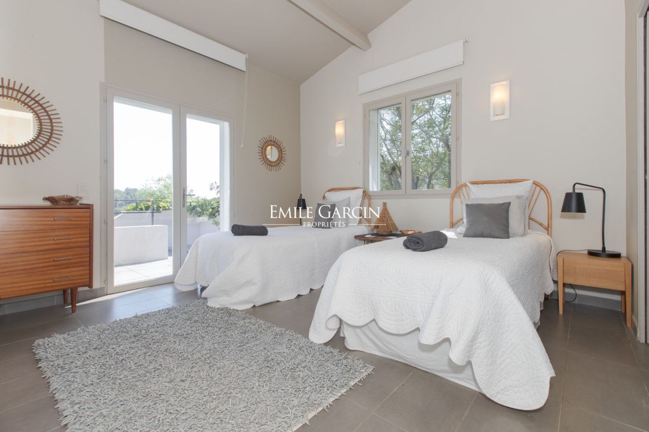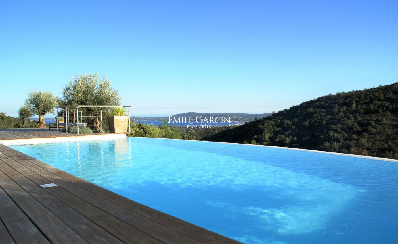 Sur les hauteurs de Grimaud, dans un environnement paisible, cette maison contemporaine sur plusieurs niveaux à la location , propose des prestations de qualité. Piscine à débordement. Facile d'accès pendant la période estivale. Cadre idyllique pour un séjour de détente.