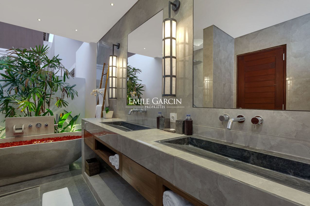 Située en plein coeur de Seminyak, cette villa contemporaine propose 6 chambres et 6 salles de bains, à seulement 15 minutes à pied de la plage.