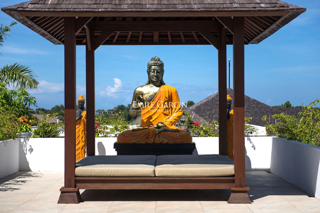 Dotée de deux salons communicants, d'un espace barbecue extérieur avec un bar, d'un espace salon au bord de la piscine, d'un espace lounge en plein air et d'un espace de méditation avec un pavillon de yoga surplombant un magnifique Bouddha et le jardin, cette villa a tout pour plaire.