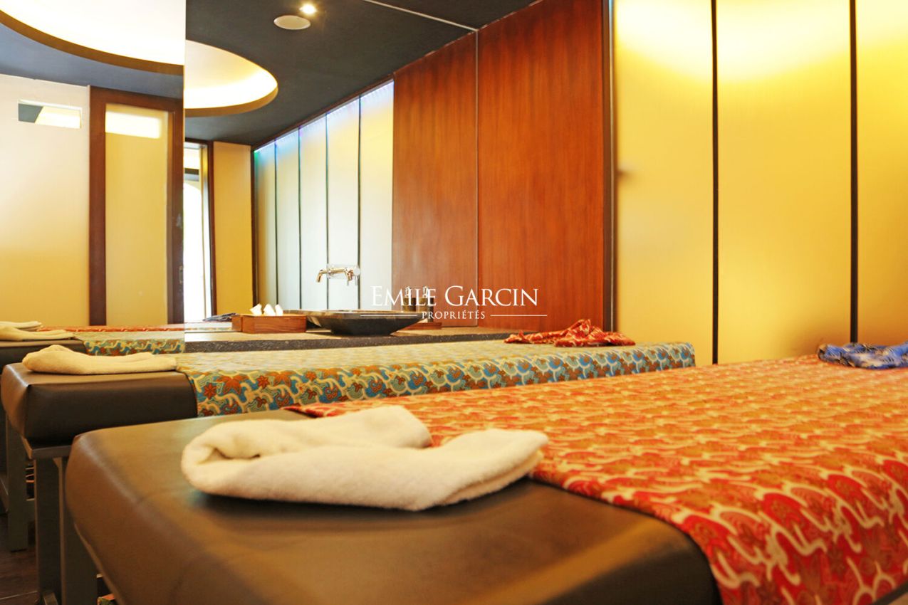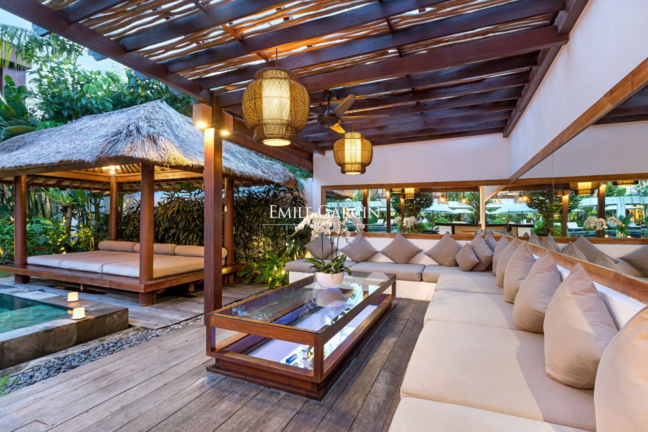 Dotée de deux salons communicants, d'un espace barbecue extérieur avec un bar, d'un espace salon au bord de la piscine, d'un espace lounge en plein air et d'un espace de méditation avec un pavillon de yoga surplombant un magnifique Bouddha et le jardin, cette villa a tout pour plaire.