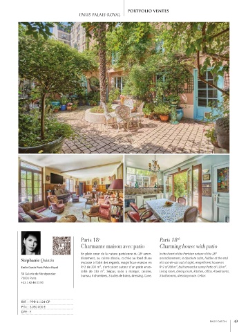 Emile Garcin Paris Palais-Royal R+2 de 200 m², s’articulant autour d’un patio enso- R+2 of 200 m², built around a sunny Patio of 110 m².