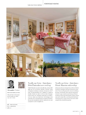 prestigieux et de beaux volumes. Terrasse de 100 m² 100 m² terrace with panoramic views of La Défense,