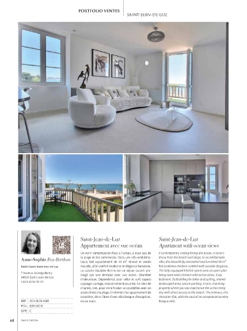 Emile Garcin Saint-Jean-de-Luz meublé, allie confort moderne et élégance balnéaire. flat combines modern comfort with seaside elegance.